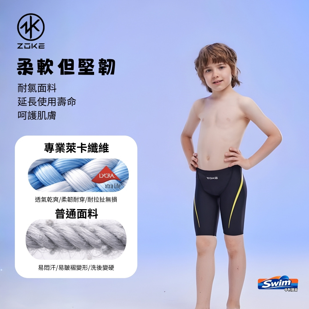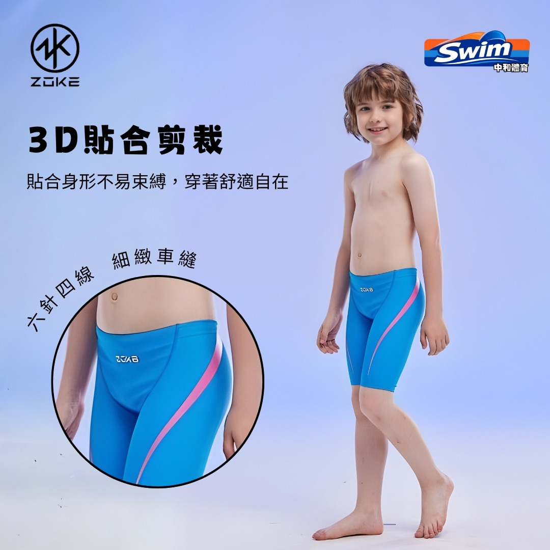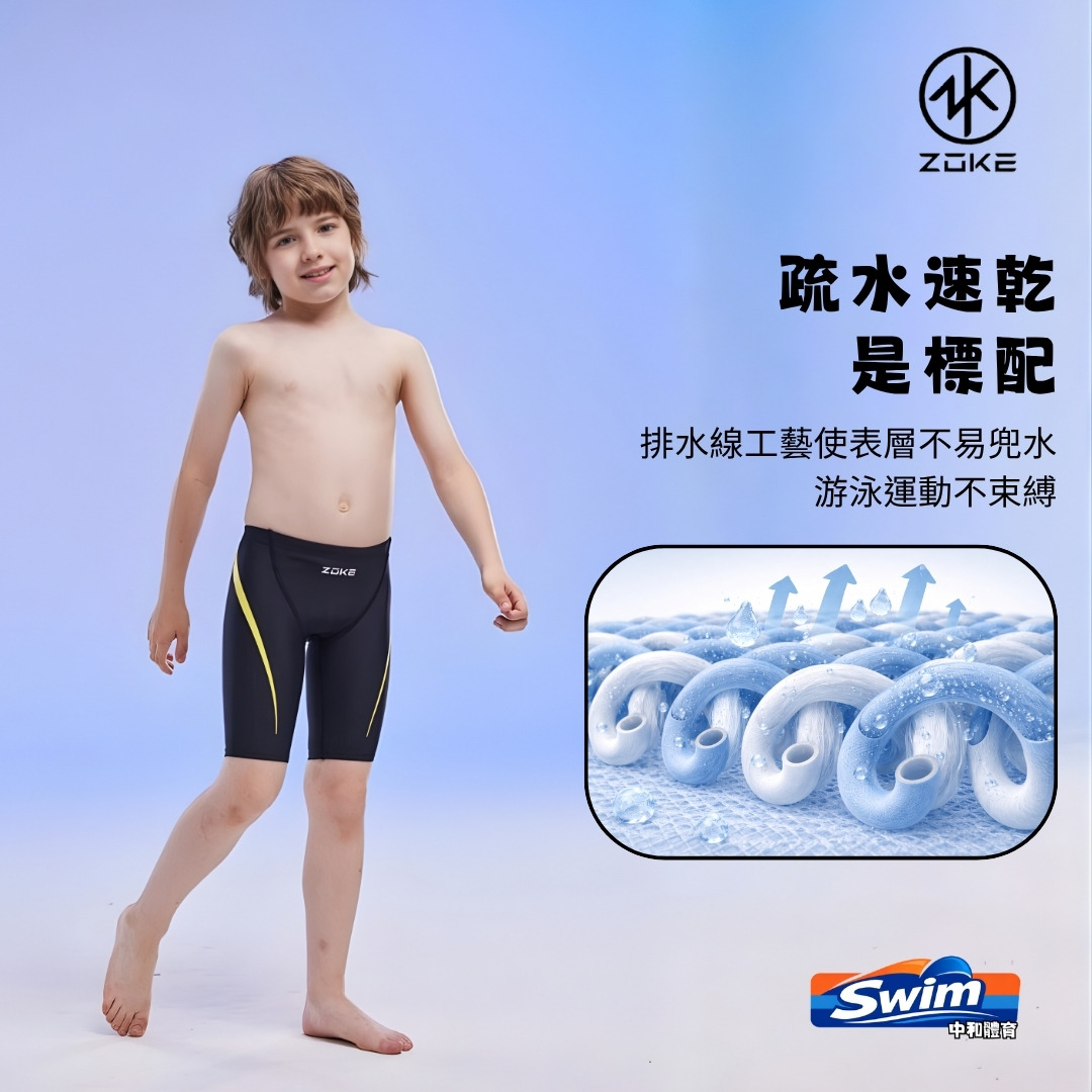 ZOKE【跳色線條】青少年/兒童 競賽及膝五分泳褲