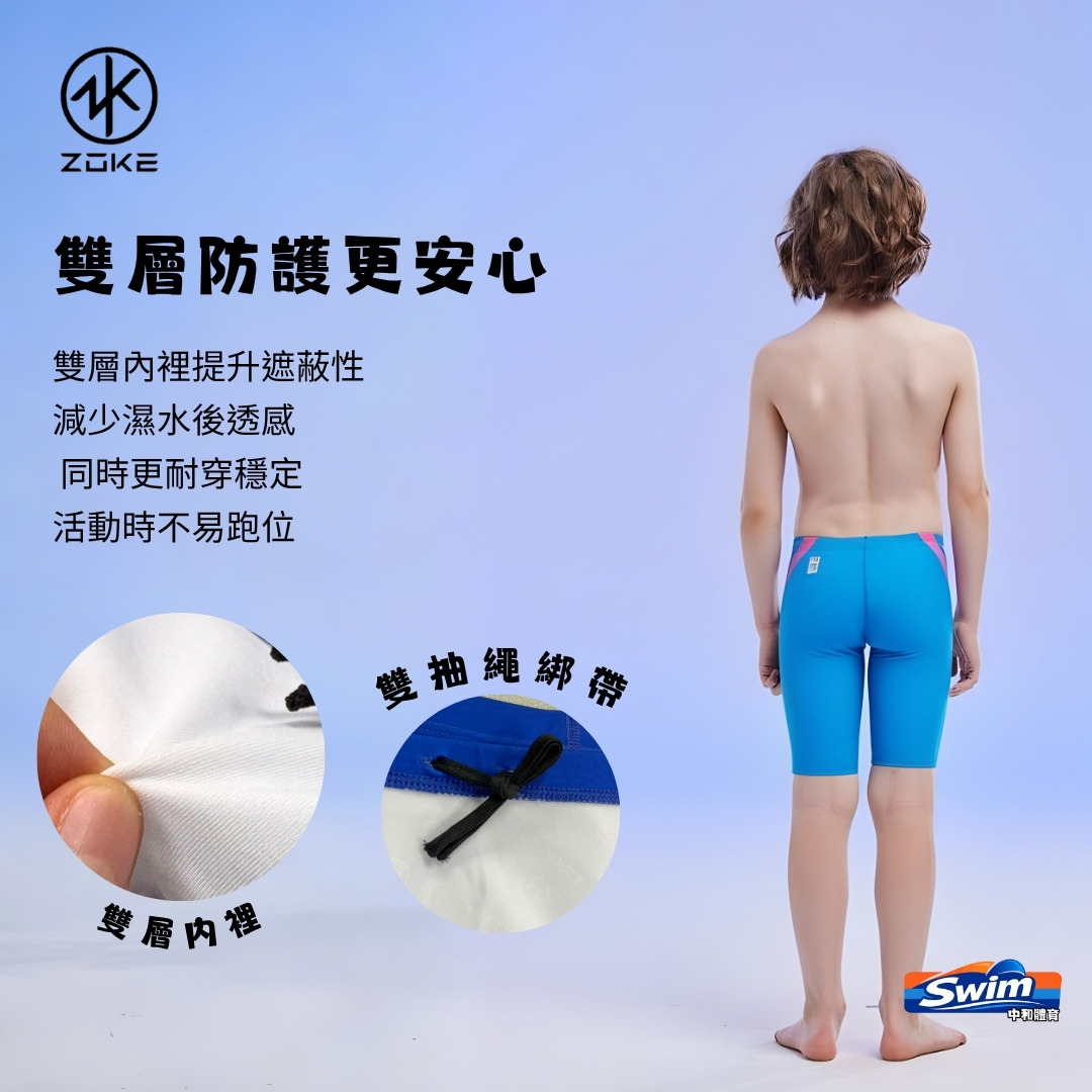 ZOKE【雙色激浪】青少年/兒童 競賽/練習連身五分泳衣(鯊魚裝)