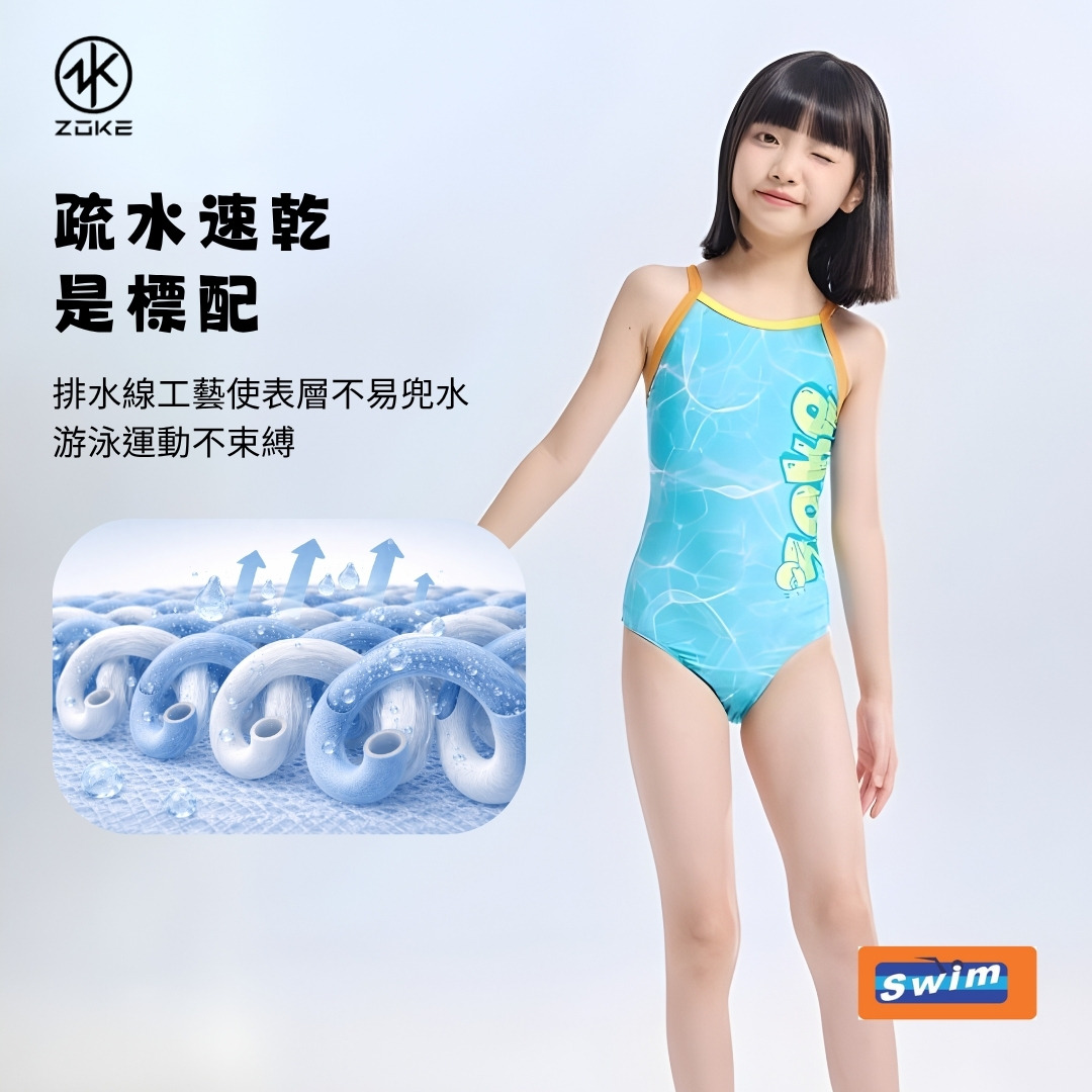 ZOKE【波光漣漪】青少年/兒童 競賽連身三角泳衣