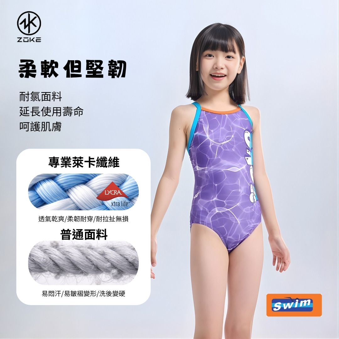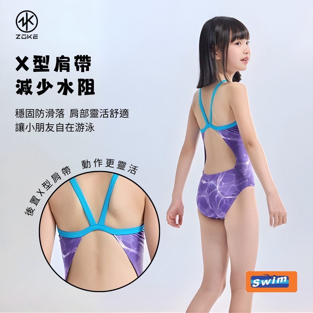 ZOKE【幻紫少女】青少年/兒童 競賽訓練連身三角泳衣