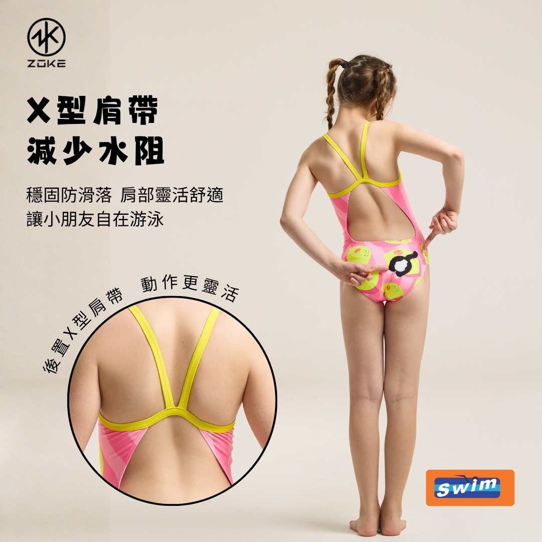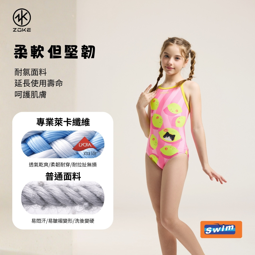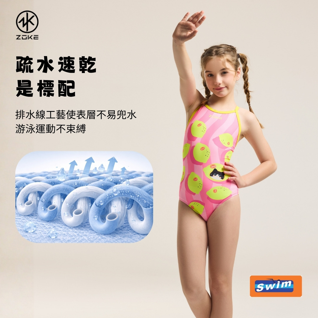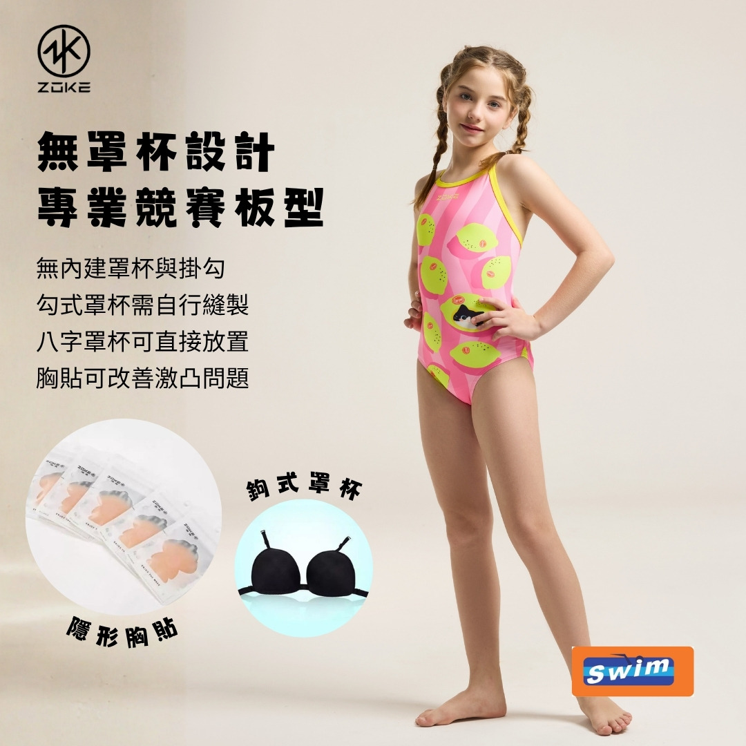 ZOKE【夏日檸檬】青少年/兒童 競賽連身三角泳衣