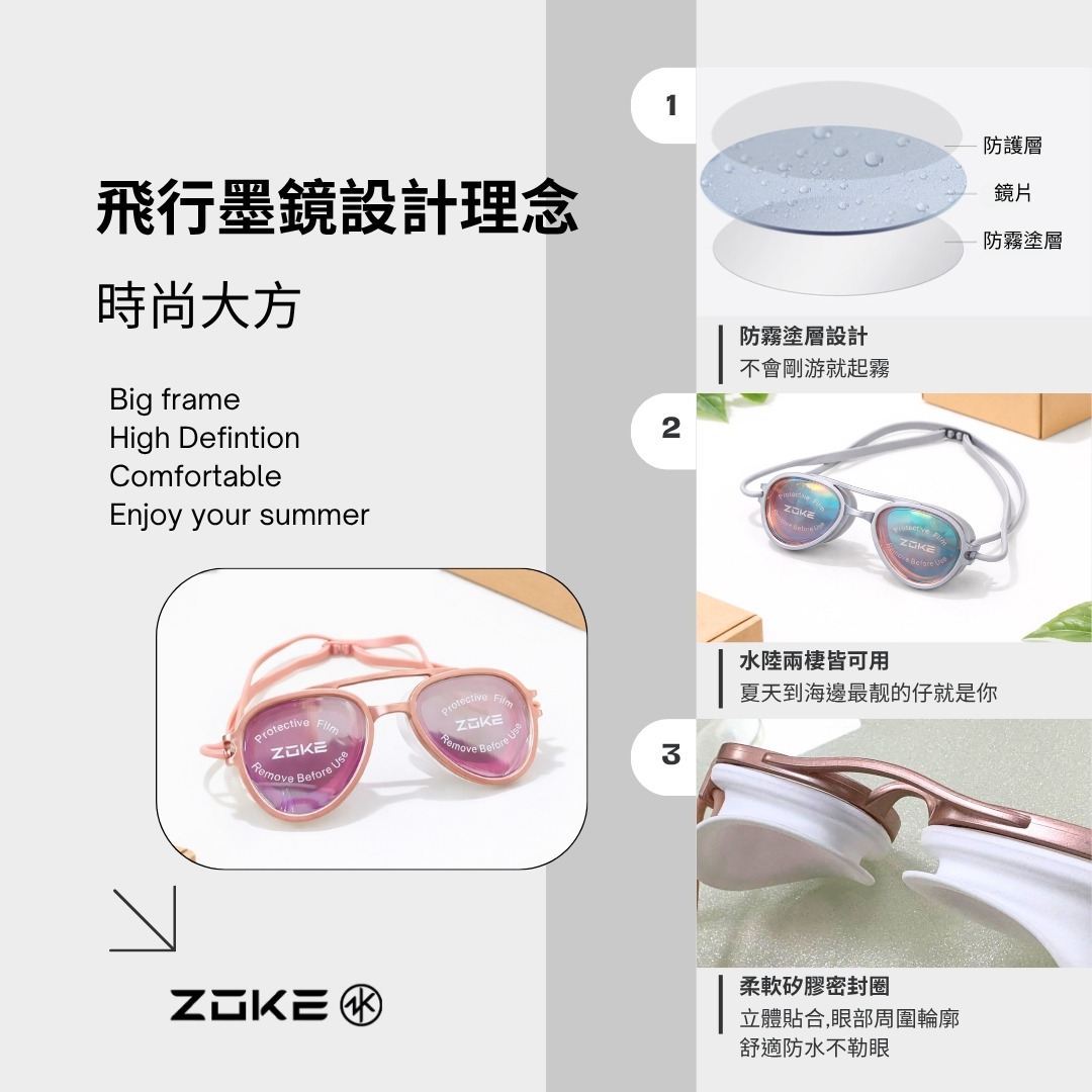 ZOKE【飛行墨鏡】時尚大框鏡面泳鏡