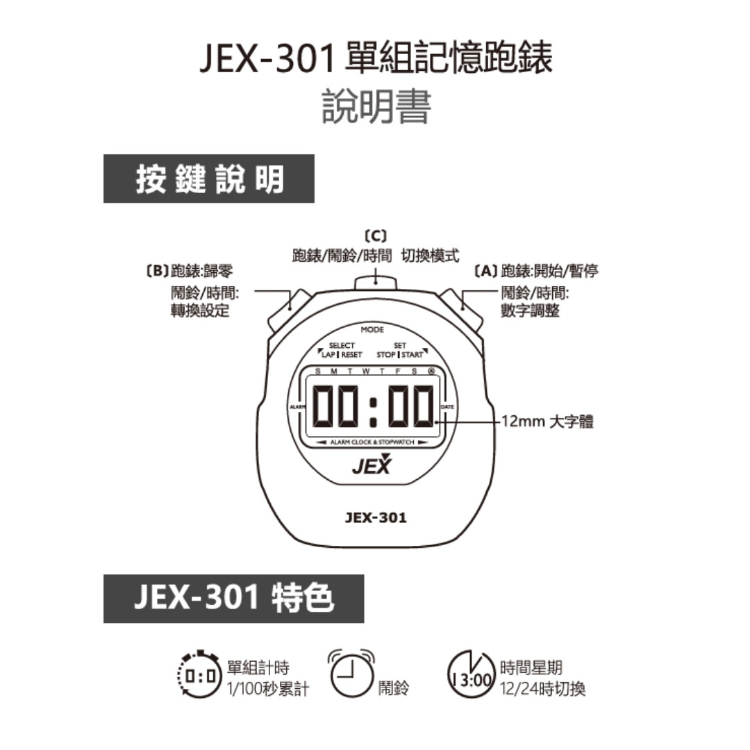 JEX-501 跑錶(碼錶) 跑步/游泳/單車