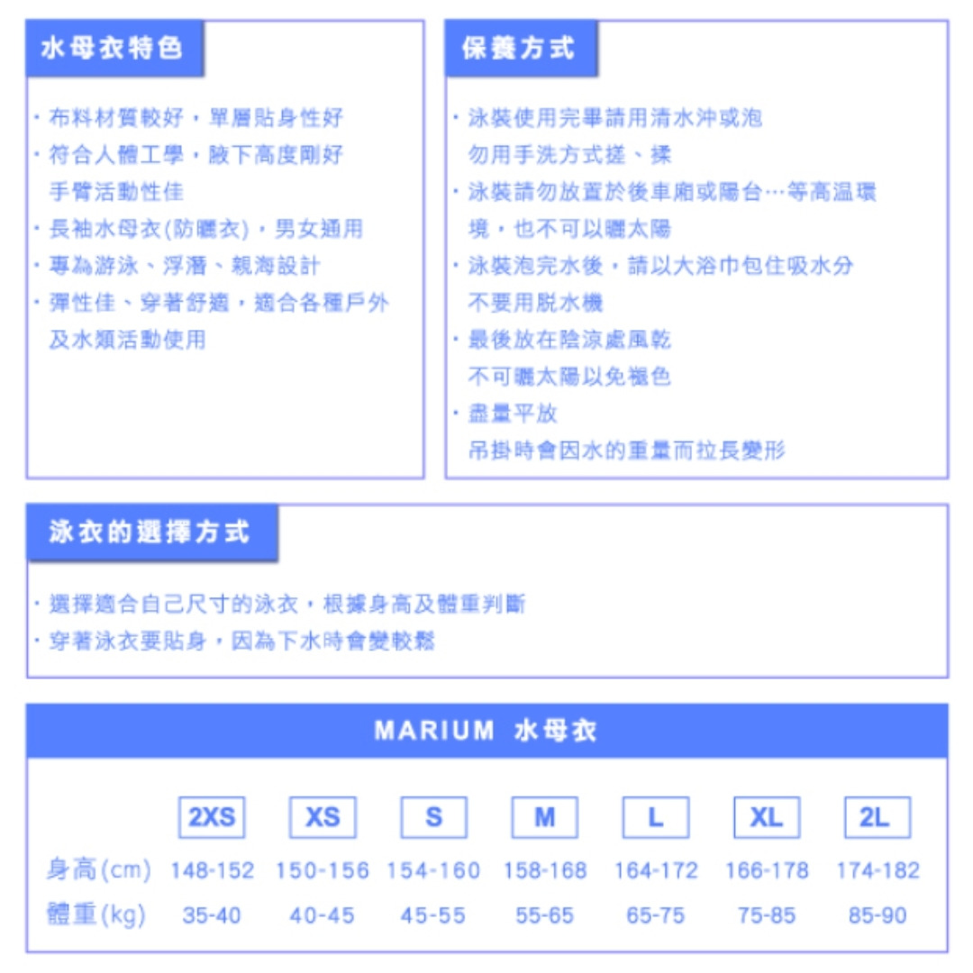 MARIUM 長袖半身防曬水母衣/防曬衣/防磨衣/衝浪衣/長袖泳衣