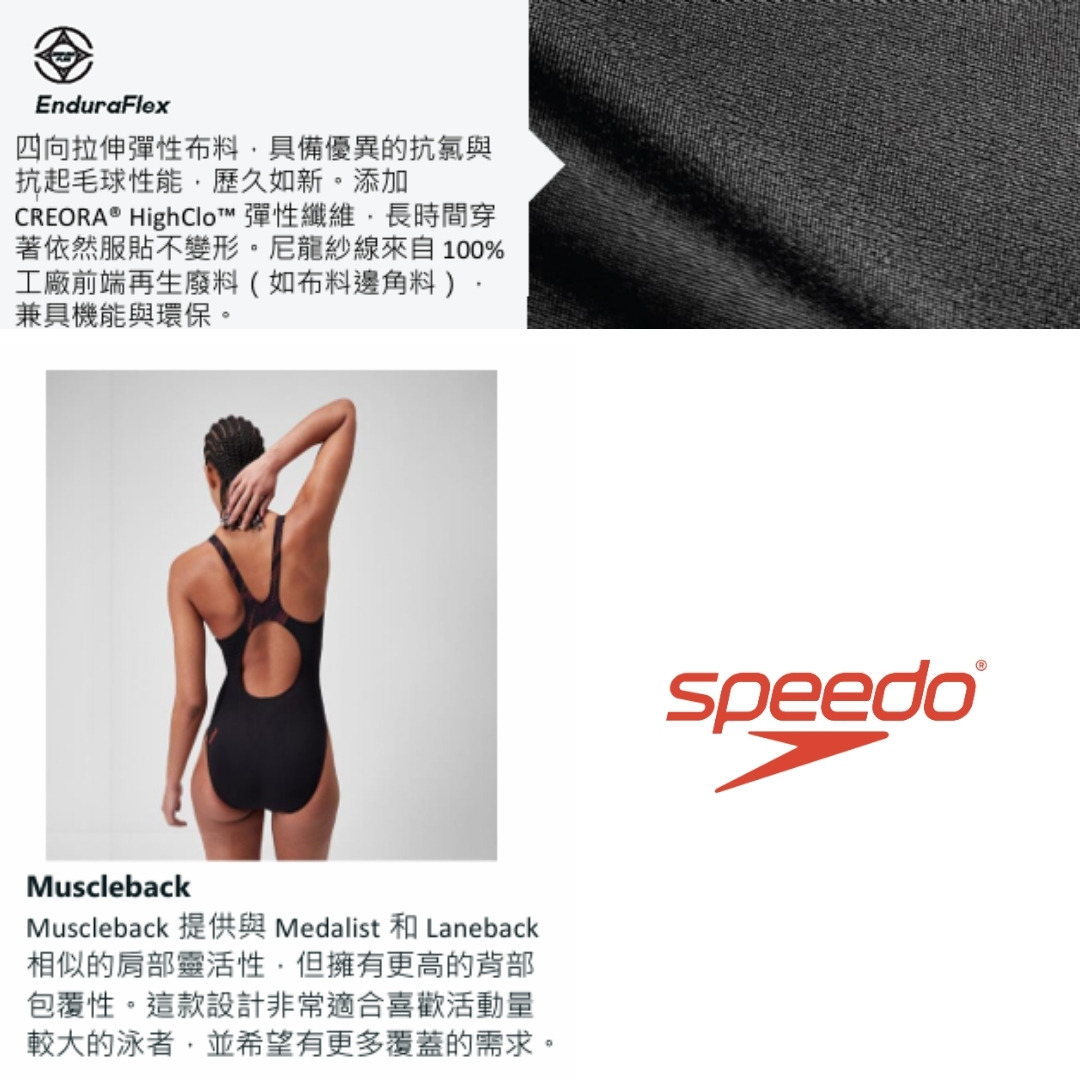 SPEEDO 運動連身三角泳衣Colorblock Splice 黑/極光藍