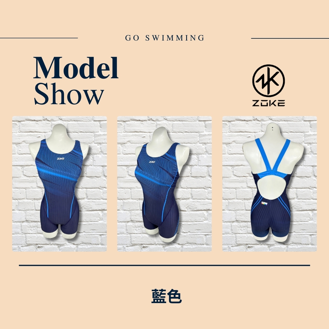 ZOKE【雙色激浪】青少年/兒童 競賽/練習連身五分泳衣(鯊魚裝)