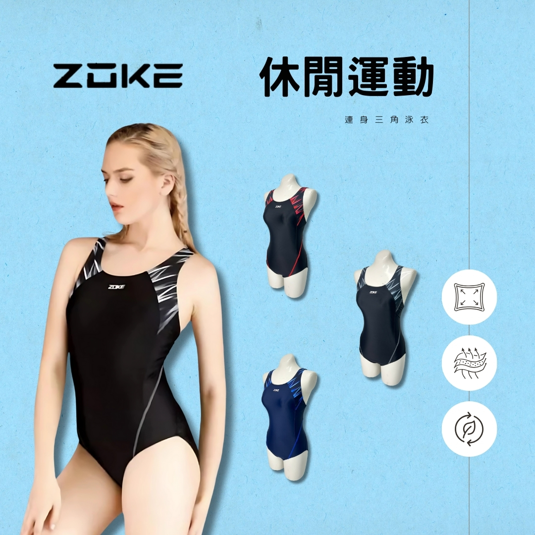 ZOKE【閃電】成人/青少年 休閒運動連身三角泳衣 游泳課/浮潛/泡湯/玩水