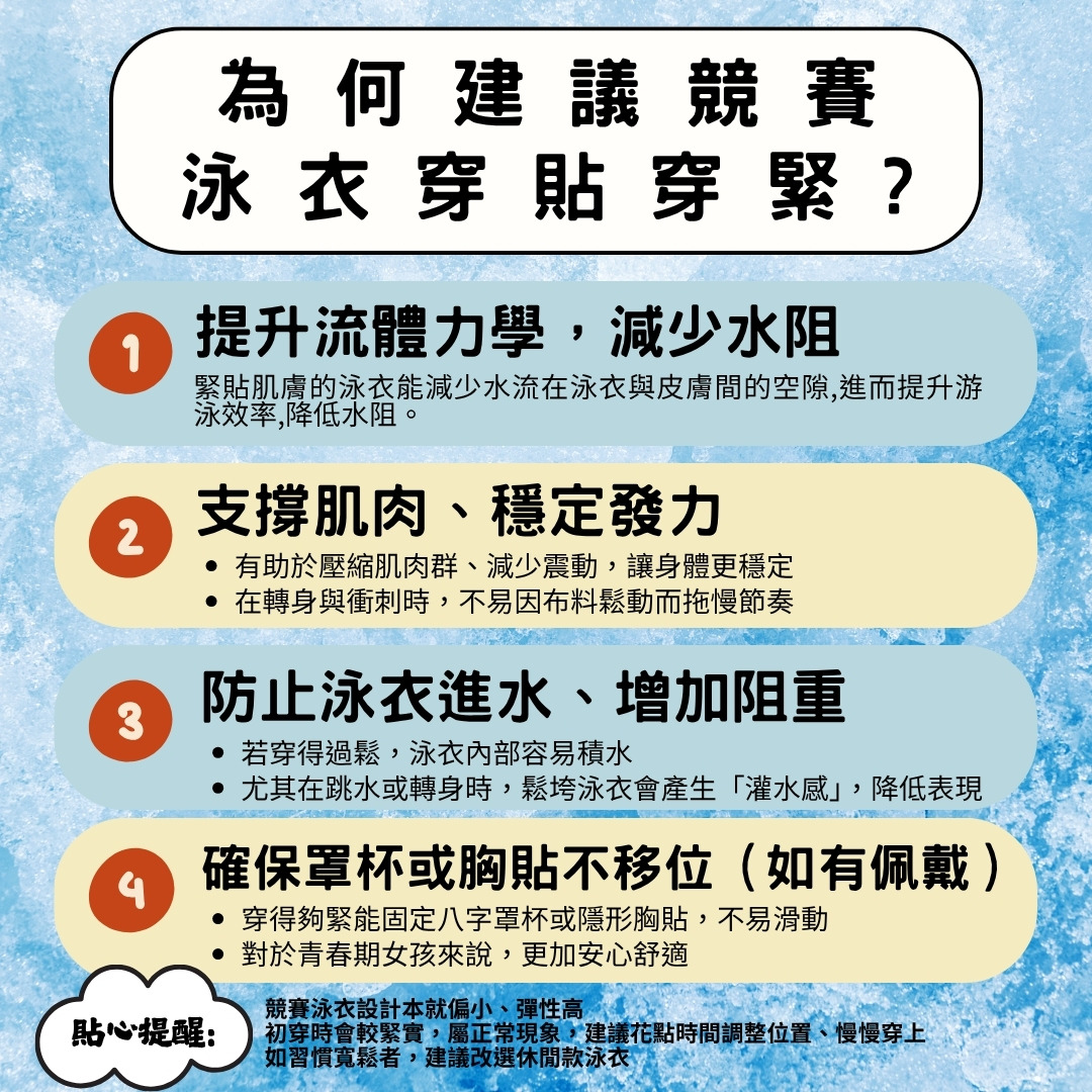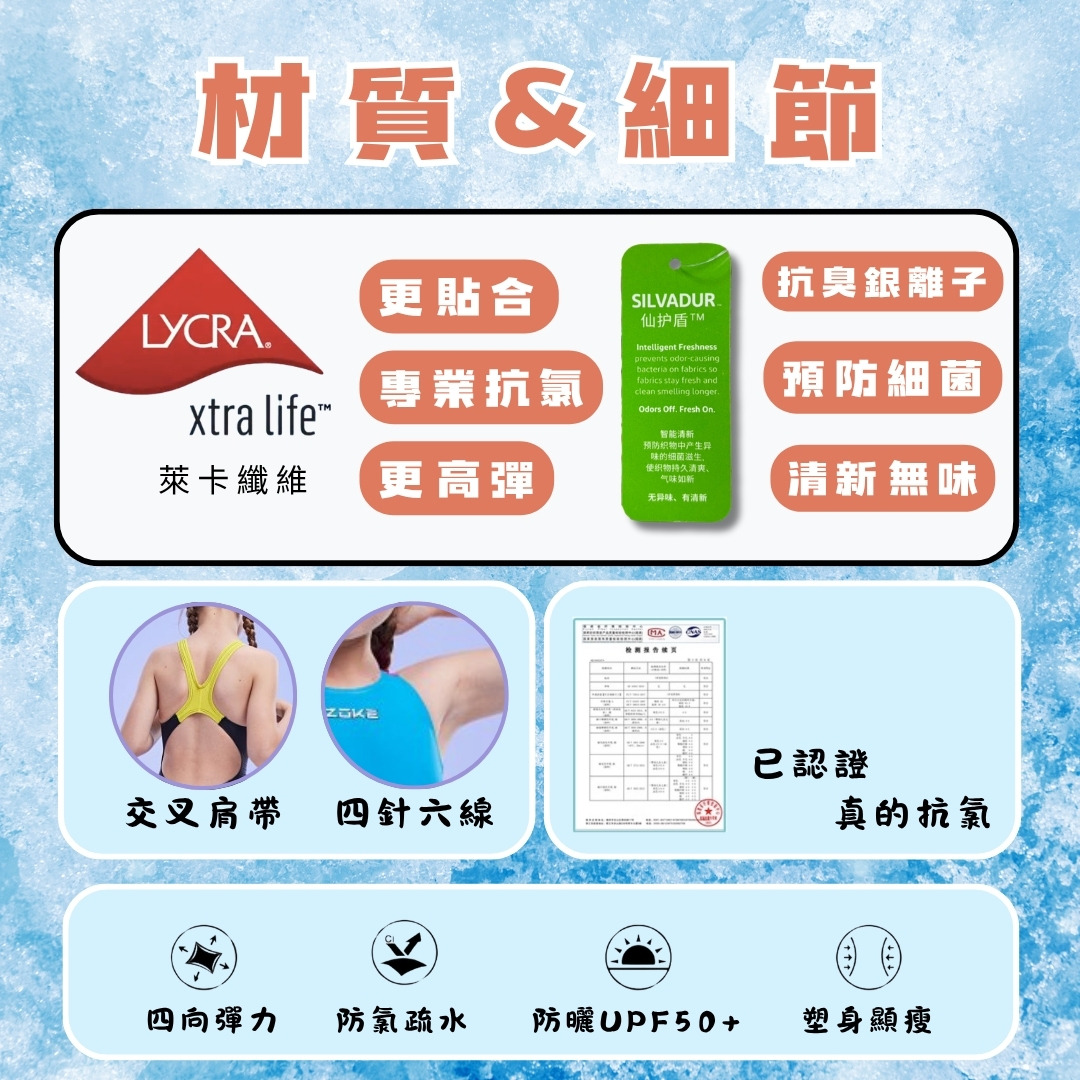 防氯耐穿:適合泳池訓練與日常游泳使用