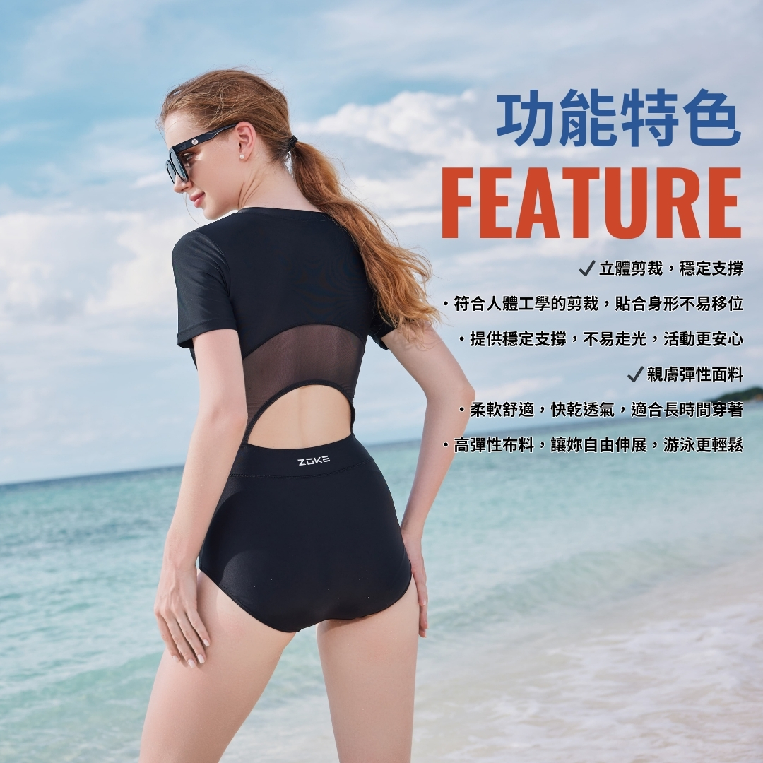 ZOKE【黑沙之境】成人/青少年 休閒運動連身三角泳衣